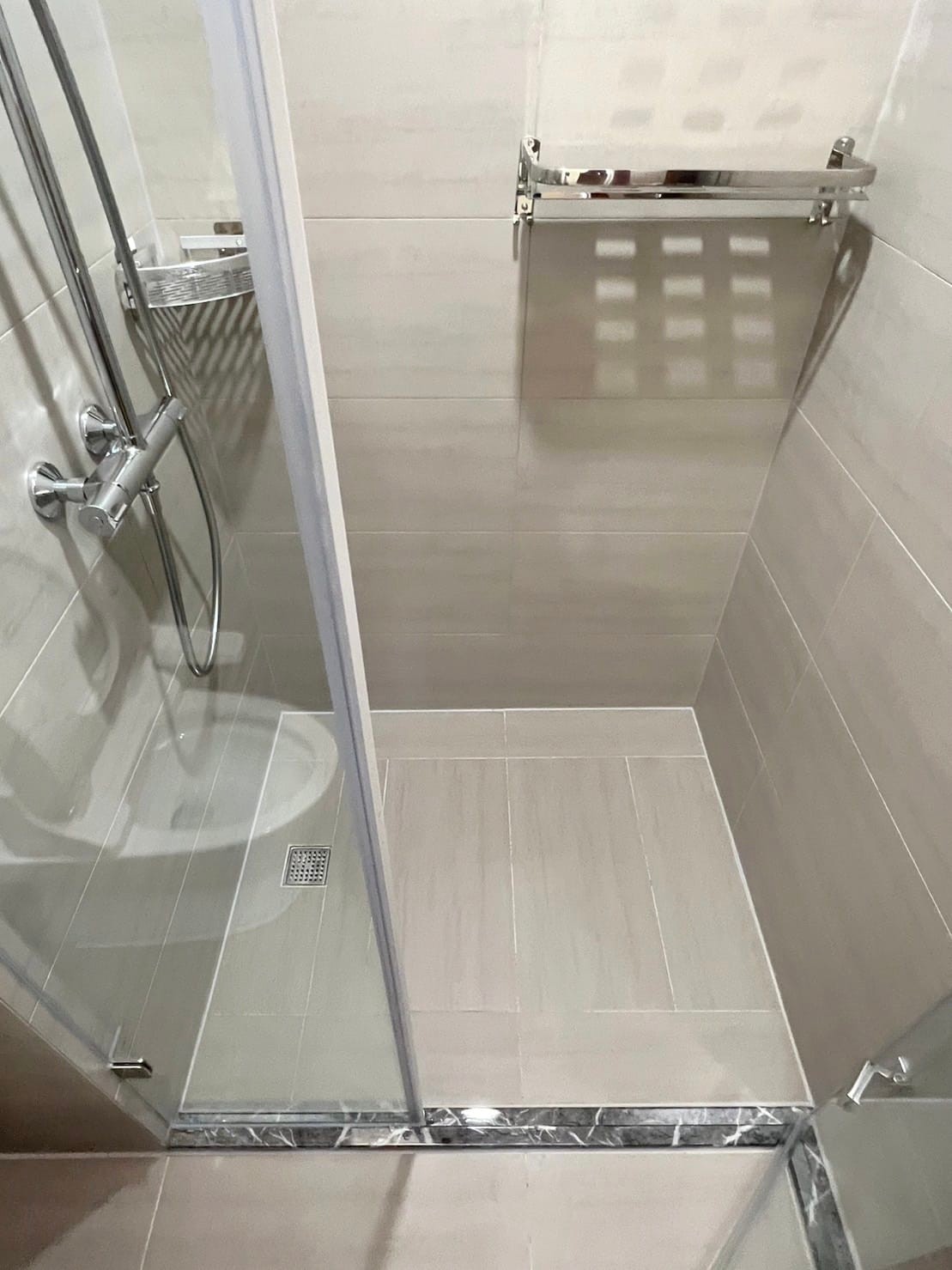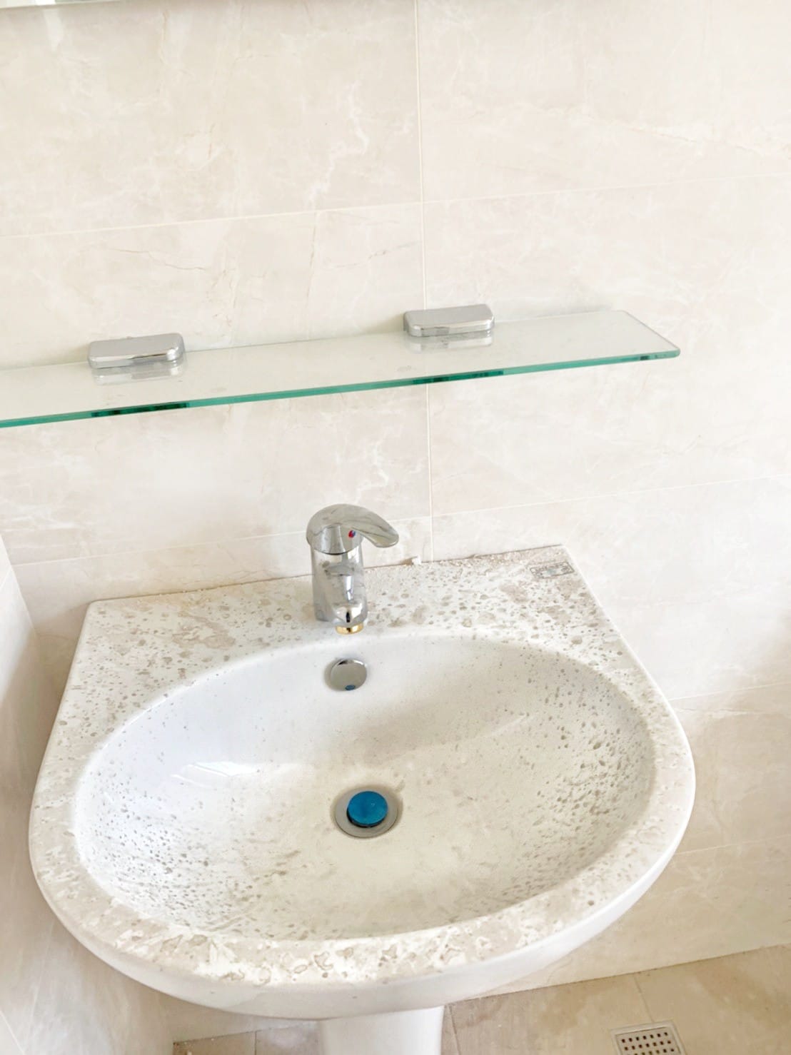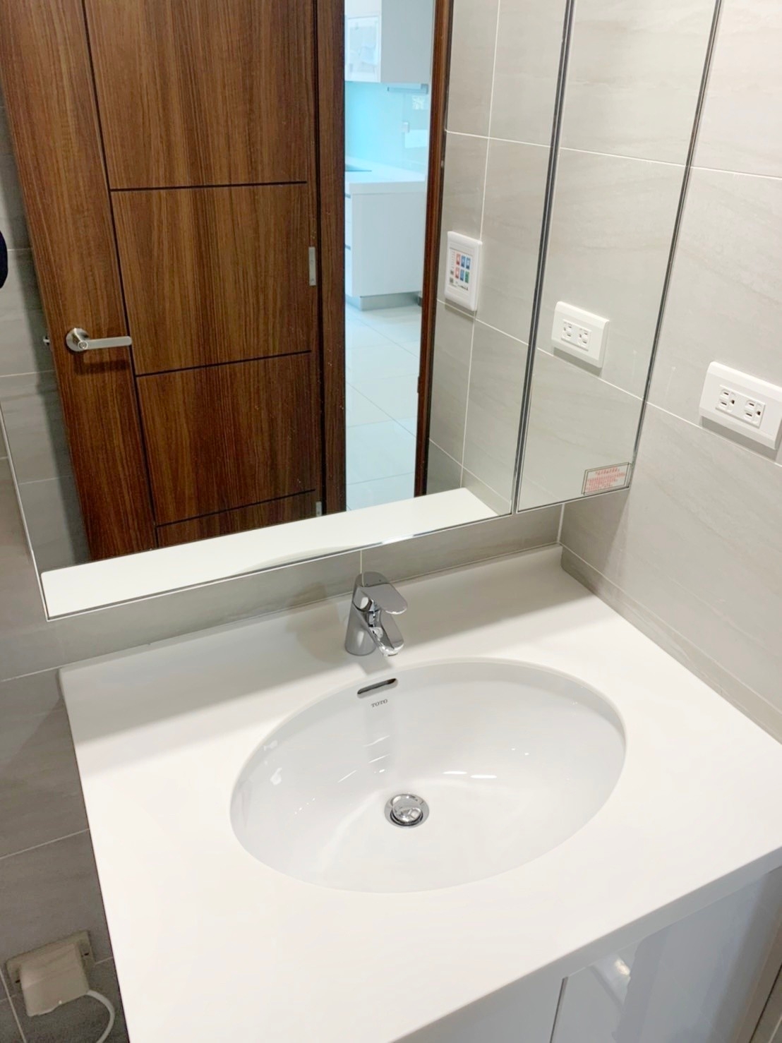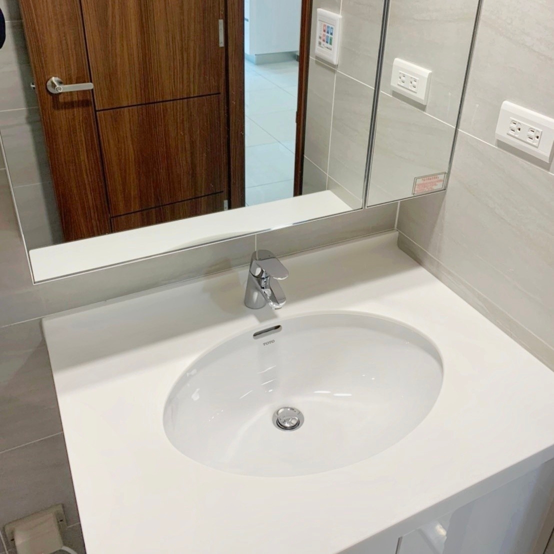 細清流程以「先乾後濕、由上而下、依材質分作業」為原則。使用吸塵設備與乾布清除鏡面縫隙、櫃體邊條、五金底座與磁磚縫中的細灰;再依材質選擇合適清潔劑處理檯面、人造石、岩板、陶瓷面盆與淋浴間玻璃。地坪磁磚則以中性或弱酸性配方刷洗,去除泥漬、積污與粉塵痕跡。五金部分以防刮海綿細部拋亮,讓浴室重新呈現恢復原本光潔如新的可用空間。