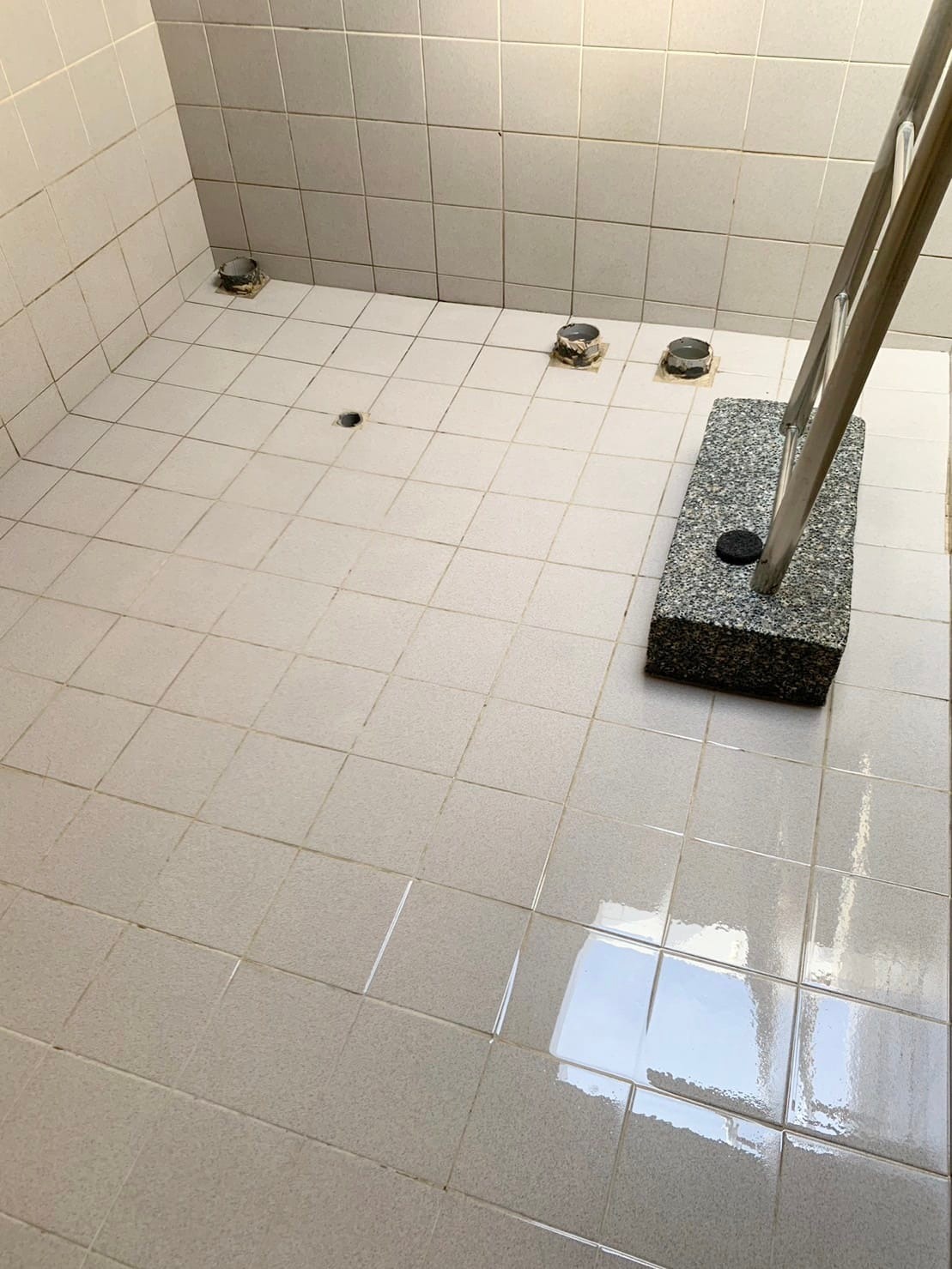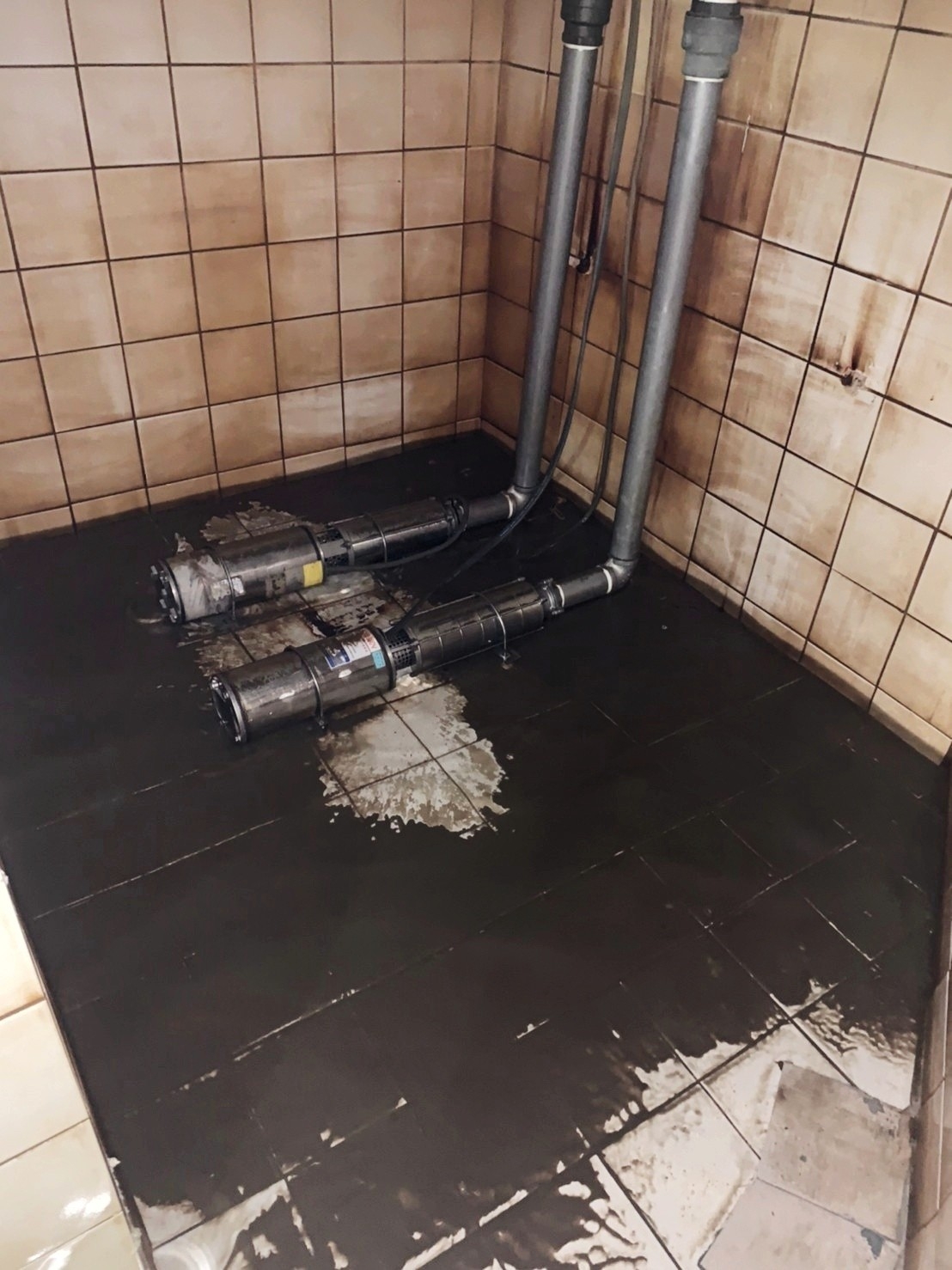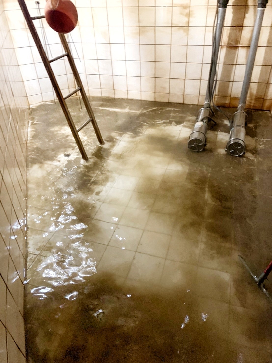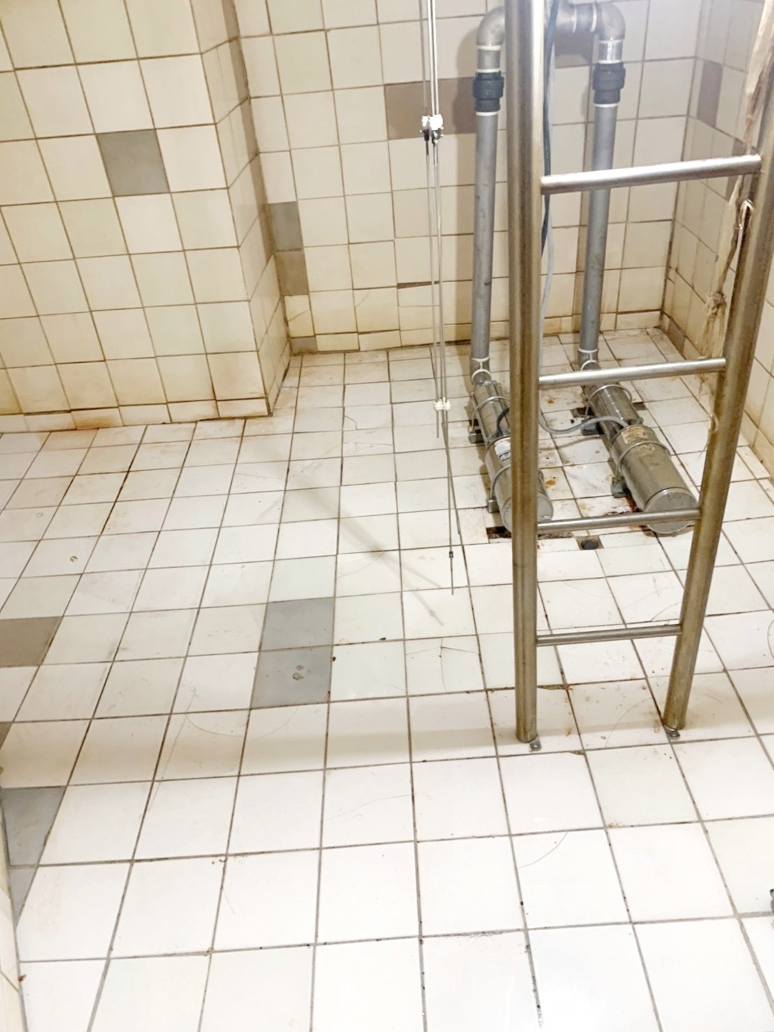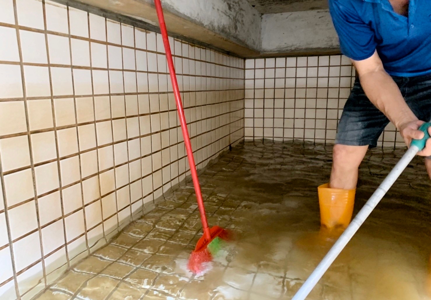 施工流程包含:首先將水塔的水全部排盡;接著使用專業刷具與清潔劑處理底部與壁面沉積,特別針對角落、管線出口與馬達底座周圍加強刷洗,以確保附著物完全鬆動。再以高壓水流沖洗並抽除污水,反覆清除殘渣,恢復磁磚與壁面的原始顏色與光澤。清洗完成後,重新注水並檢查管路與馬達運作,確認水質乾淨、水塔功能正常。整體作業不僅還原內部潔淨,更大幅降低沉積污染與細菌滋生風險,提升住戶飲用與使用水源的安全性。